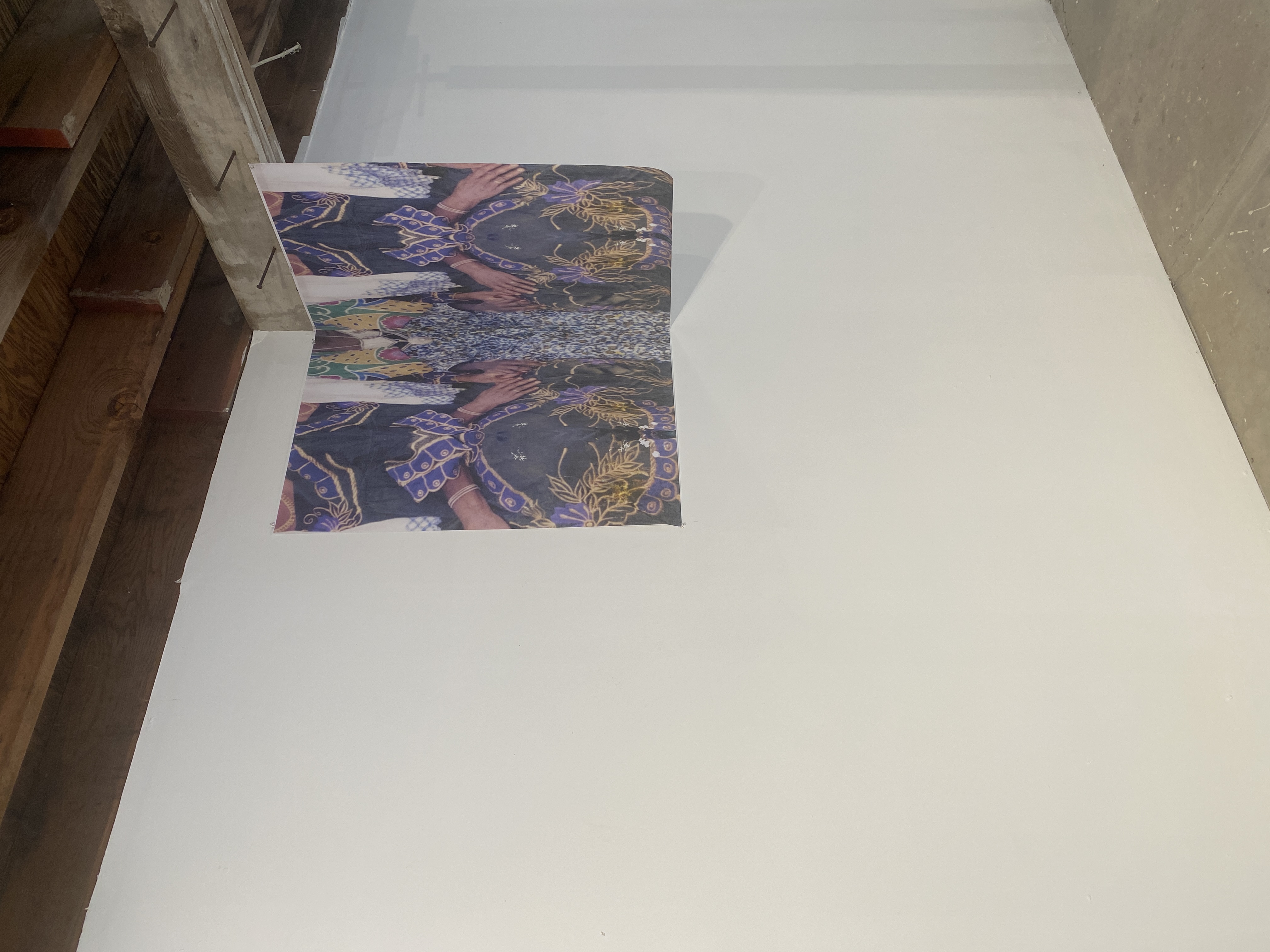 I LOVE SEEING YOU HERE. I LOVE SEEING YOU EVERYWHERE (2023) is a single print developed from a detailed image of my grandmother holding a dear friend. The installation was created during my residency at STONELEAF RETREAT, inviting you to step in and be surrounded by her presence and memory.